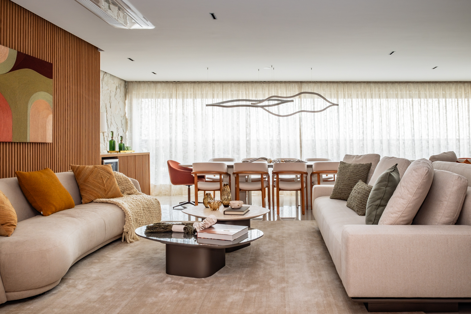 [vc_row content_width="grid" css=".vc_custom_1527194912831{margin-bottom: 40px !important;}"][vc_column width="1/4"][/vc_column][vc_column width="1/2"][vc_column_text] O projeto de decoração moderna para apartamento no bairro de Pinheiros, São Paulo, teve como objetivo ampliar o living e a suíte master. Assim, a cozinha e varanda foram integradas à sala de jantar...