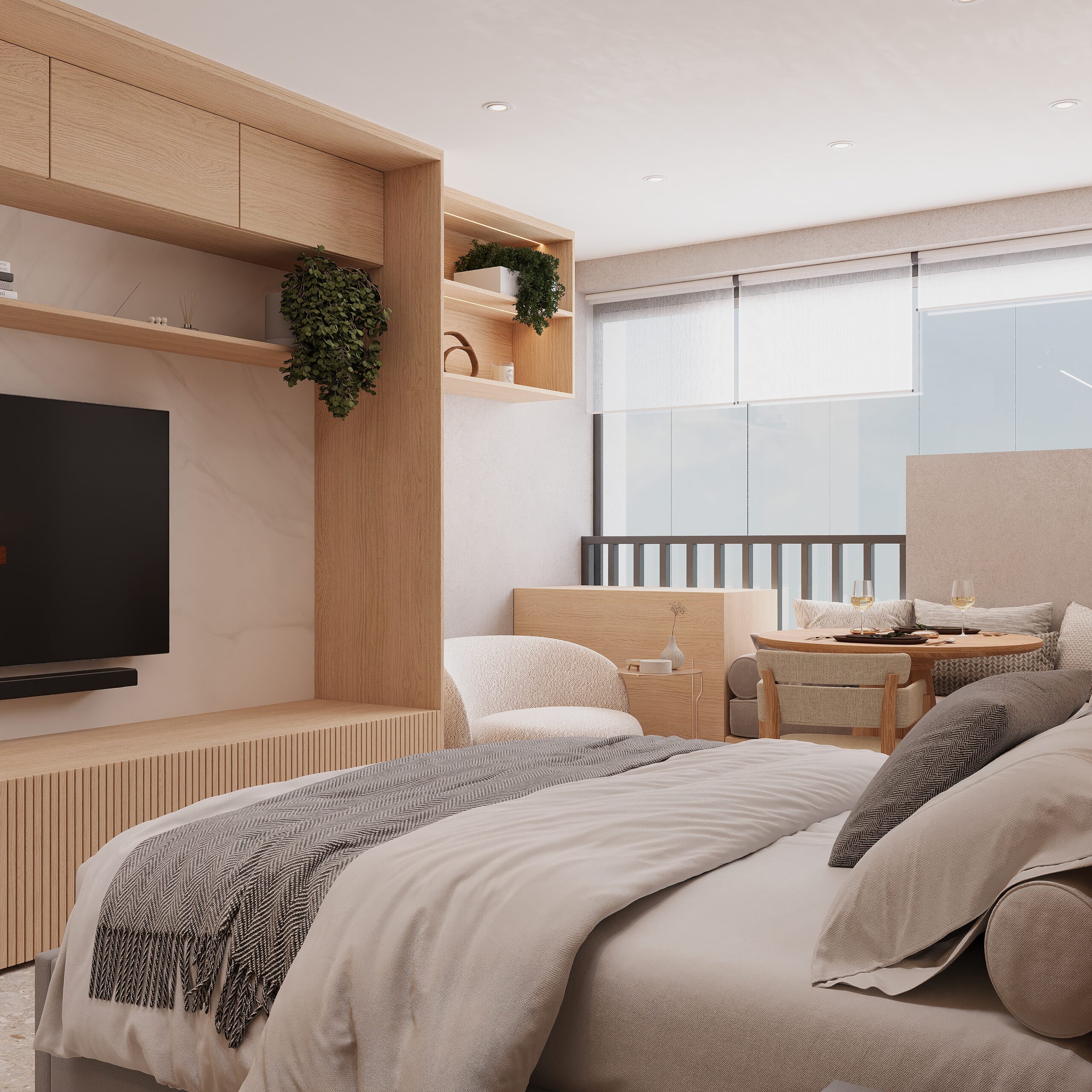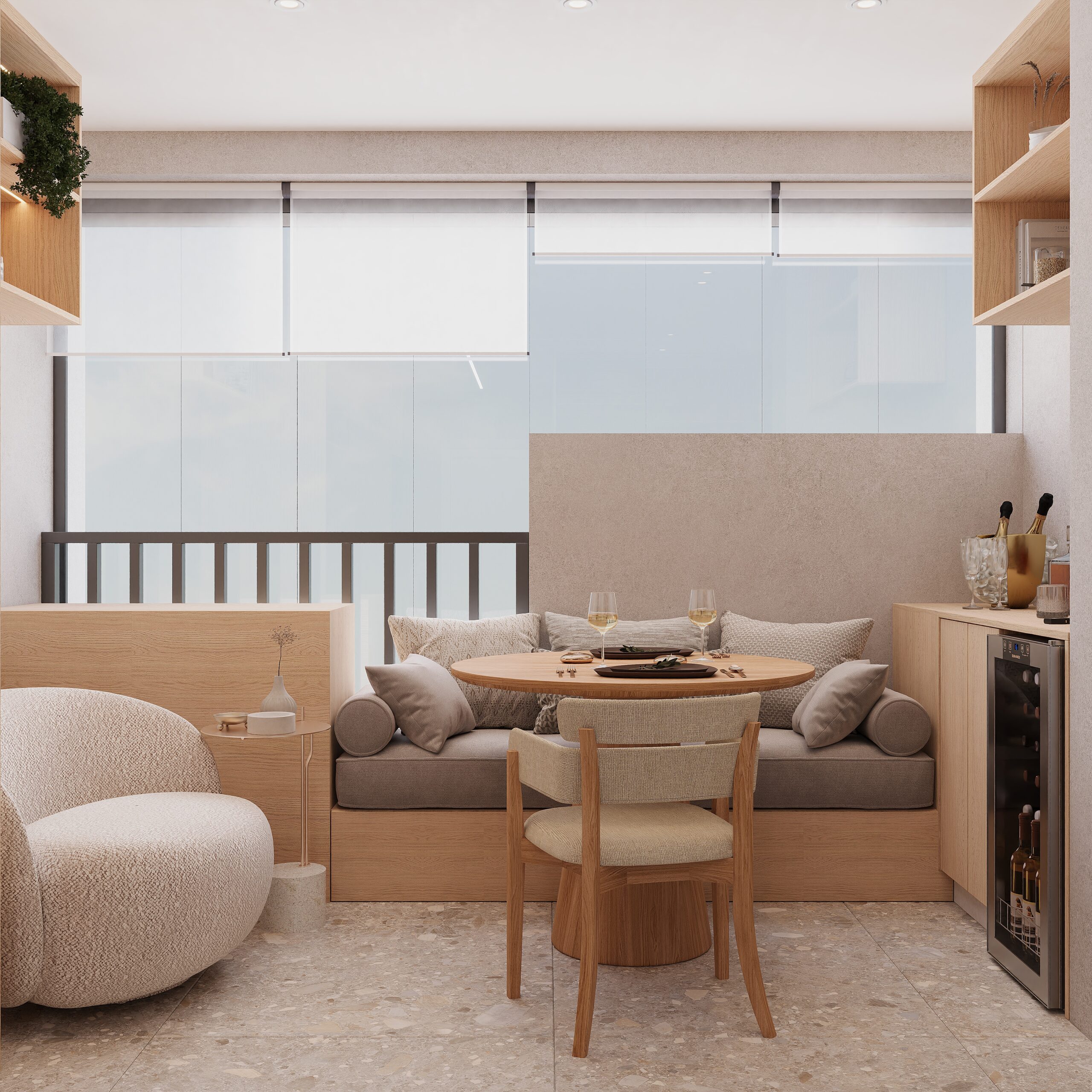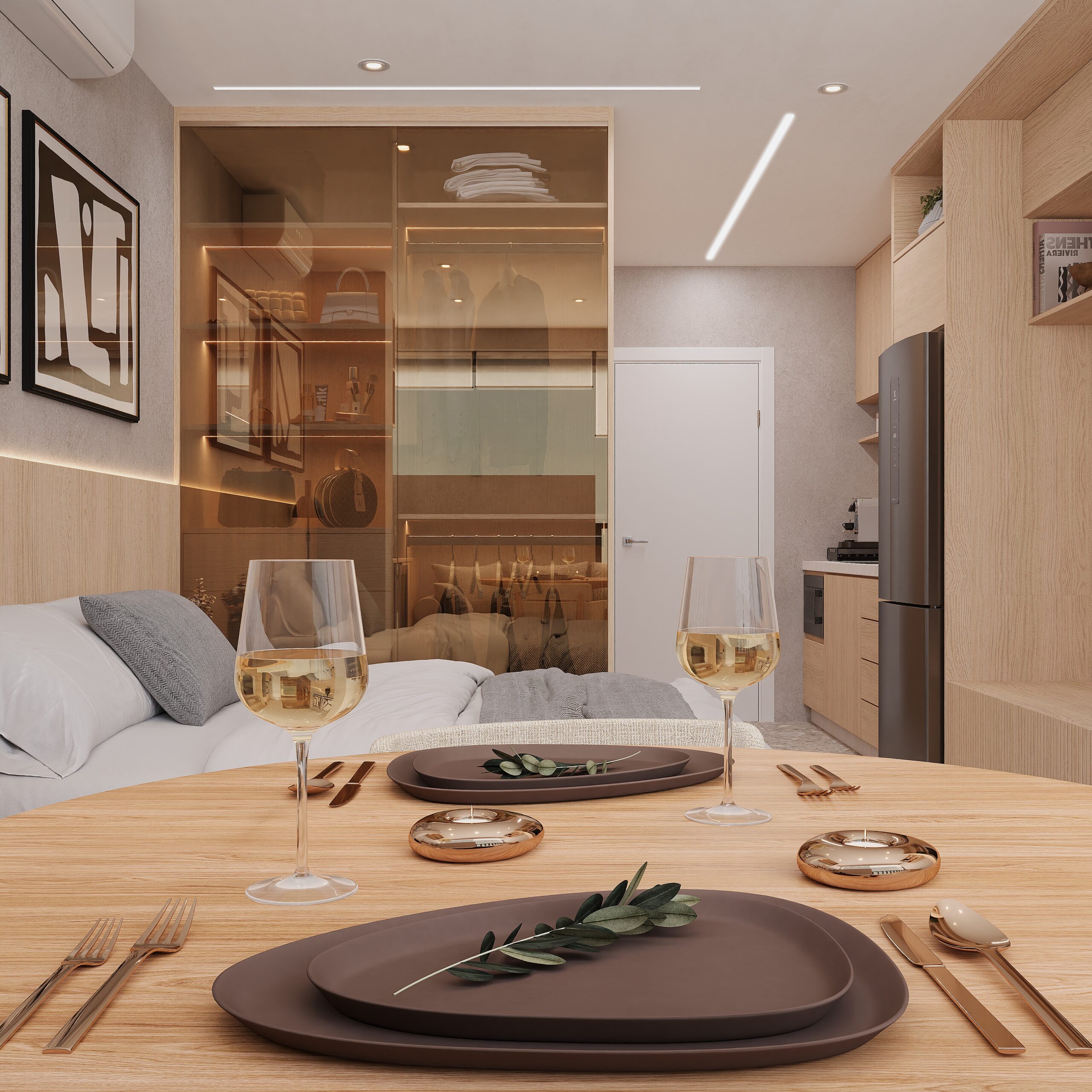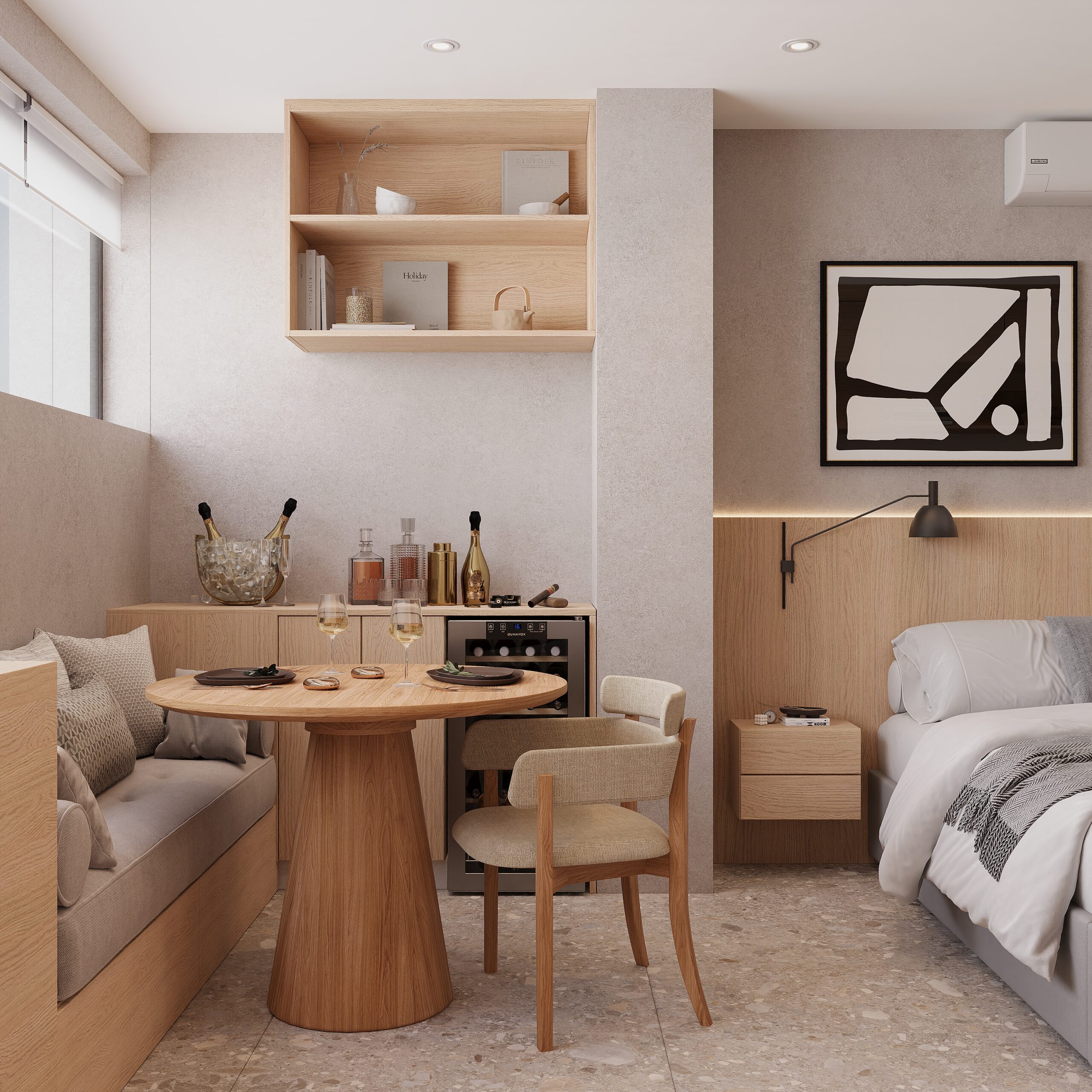 Este projeto autoral traduz uma abordagem sensível ao morar contemporâneo, mostrando como o design de interiores pode transformar studios e apartamentos compactos em espaços sofisticados e cheios de personalidade.